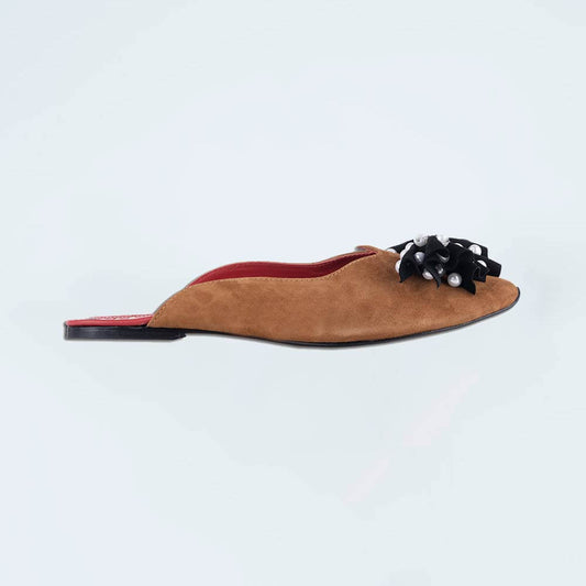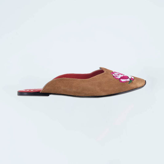 Rose Garden Suede Brown With Roses Mules