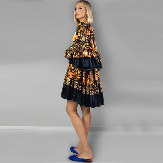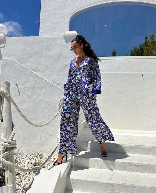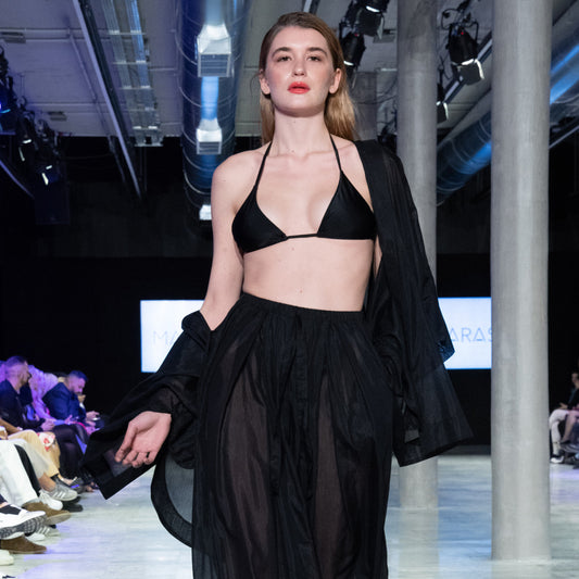 Black Silk cotton shirt & shorts with mother of pearl buttons