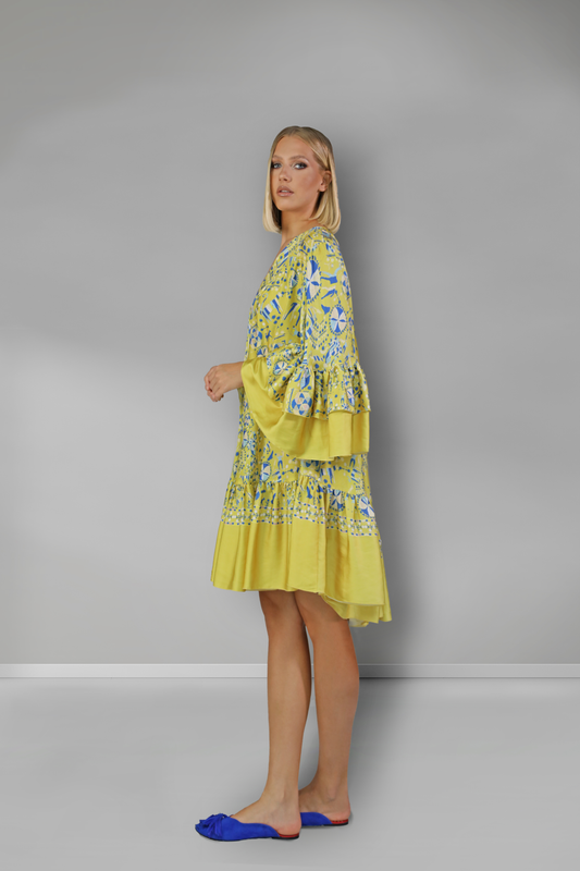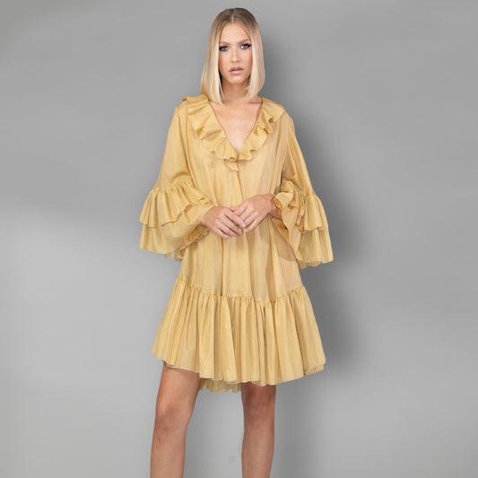 Beige Silk cotton shirt & shorts with mother of pearl buttons